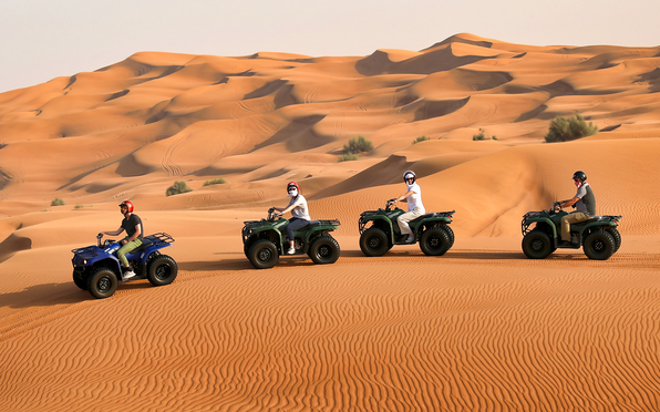 On this Morning Desert Safari, you will experience the thrill of dune bashing in a 4x4 vehicle, guided by our expert drivers. Discover the unique beauty of the desert and spot rare flora and fauna along the way. Adventure seekers can also enjoy camel riding, quad biking, and sandboarding, making it an exciting and action-packed morning for the whole family.